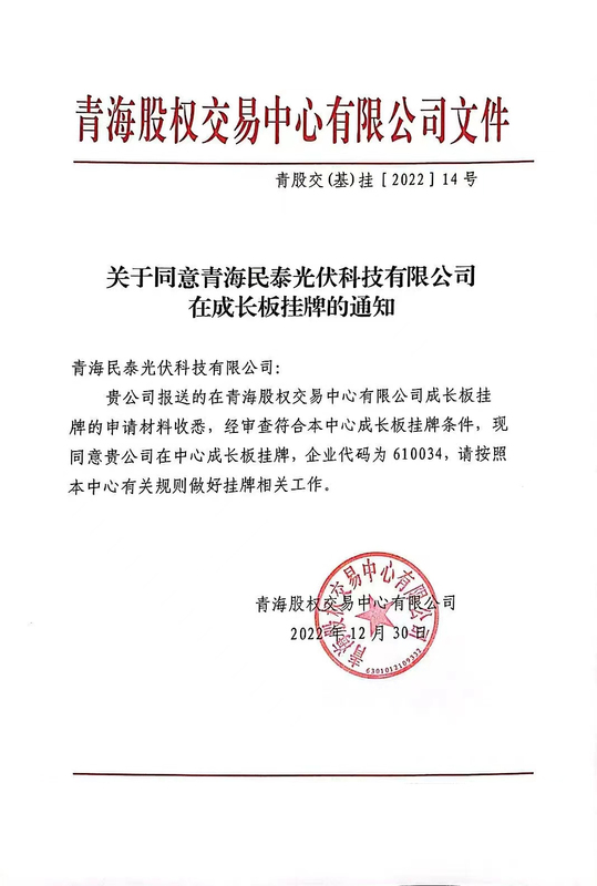 3月,青海民泰光伏科技有限公司成立,營業收入超1000萬。